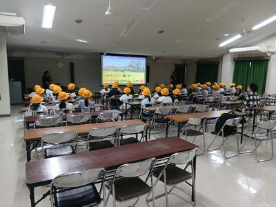 暴風、煙、地震、消火器体験に地震や火事の映像を視聴しています。実際に体験したり、映像で見たりして災害の怖さについて学べました。