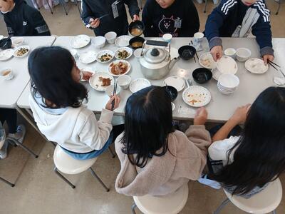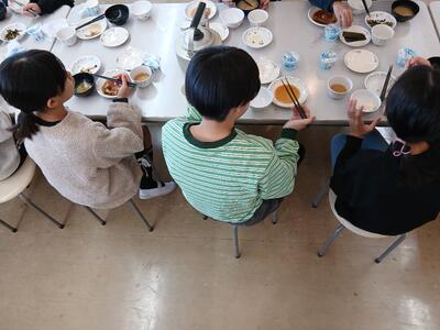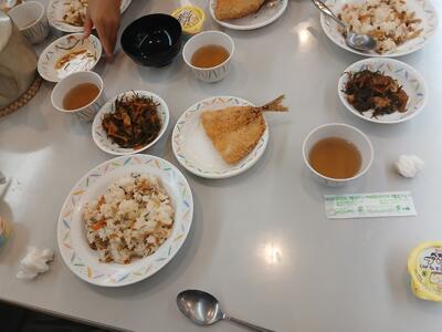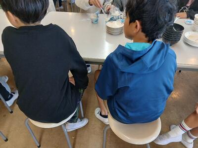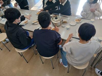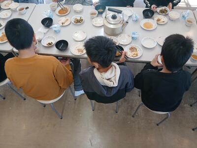 お弁当をおいしく食べました。自分で作ってきた児童もいたようです。